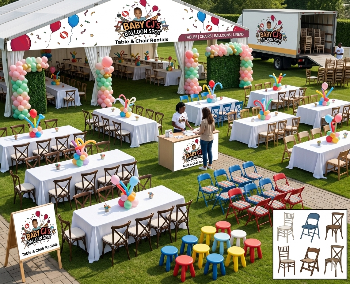 • Full party setups (birthdays, baby showers, weddings, etc.)